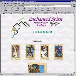 There are four kinds of readings available here -- from the quick, basic, snapshot type to the more extensive, in-depth look at what may be going on in a given situation. Each reading spread I offer presently is designed to deal with one question at a time, as I have explained elsewhere.